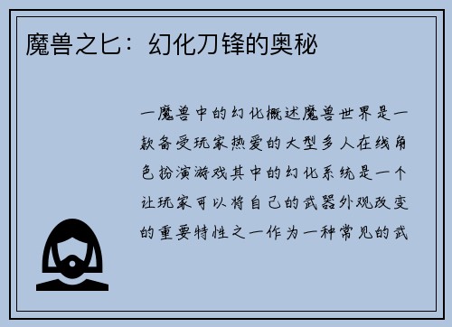 魔兽世界单机版如何做装备武器幻化 一、了解装备武器幻化系统 在魔兽世界单机版中,装备武器幻化是一种让玩家的装备外观变得更加个性化的系统。通过装备武器幻化,玩家可以将自己的装备外观替换成其他装备的外观,以展现自己的独特风格。了解这个系统的基本原理和操作方法是开始进行装备武器幻化的第一步。 玩家需要找到一个名叫“幻化师”的NPC,他们通常会出现在主城或其他重要地点。与幻化师对话后,玩家可以查看自己已经...