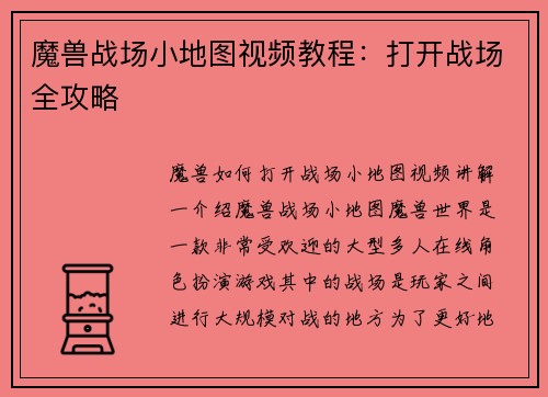 魔兽游戏如何退出全屏快捷键设置 介绍 魔兽世界是一款备受玩家喜爱的大型多人在线角色扮演游戏。在游戏中,全屏模式可以提供更好的游戏体验,但有时候我们也需要退出全屏模式。本文将介绍如何设置魔兽游戏的退出全屏快捷键,以便玩家可以随时切换全屏和窗口模式。 步骤一:打开游戏设置 打开魔兽游戏并登录账号。在游戏主界面,点击右上角的"选项"按钮,然后选择"系统"选项卡。bg大&...